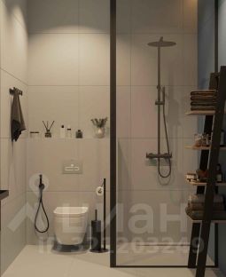 • Санузел: Современный санузел с душевой системой, раковиной и гигиеническим душем.