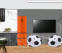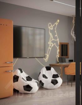 • Общая информация: Просторный апартамент с новой мебелью и уникальными предметами декора на футбольную тематику.