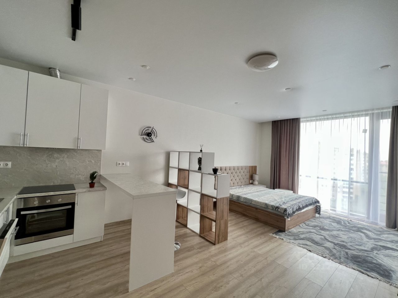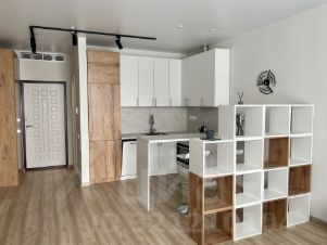 В студии выполнен современный дизайнерский ремонт, который создаёт атмосферу уюта и комфорта. Вся необходимая мебель уже на месте: удобная кухня и обстановка в комнате. Апартаменты оснащены современной техникой, включая кондиционер, холодильник, посудомоечную машину, телевизор и стиральную машину. В ванной комнате установлена душевая кабина, что делает её особенно удобной для проживания.