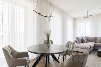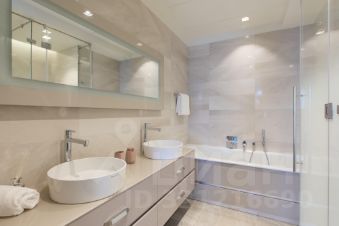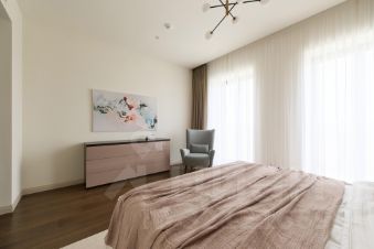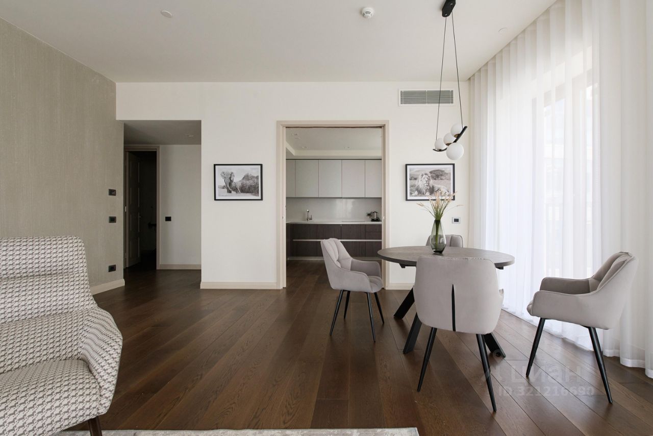 Выполнена отделка по дизайнерскому проекту с применением ценных пород дерева и отделочных материалов, апартамент меблирован и оснащен качественной бытовой техникой. Сантехника и свет премиальных мировых брендов.
