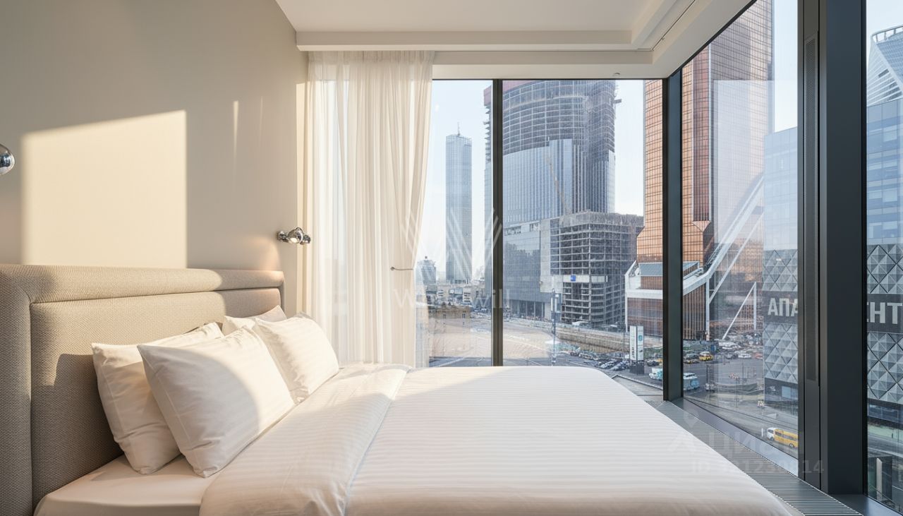 Главное о локации. Жизнь здесь сосредоточена в самом сердце Москва-Сити. Утро можно начать с прогулки по набережной или короткой дороги в детский сад 2112 — всего 10 минут пешком. Старшие дети учатся в "Школе будущего" 2030, школе 1726 или английской школе 1232. Днём удобно заглянуть в "Афимолл" за покупками, в супермаркет "Перекрёсток" или на тренировку в фитнес-центр World Class. Вечером жители выбирают рестораны и кафе торговой галереи или концерты и события в деловом квартале. Метро "Международная" и аэроэкспресс в аэропорт Домодедово находятся в трёх минутах ходьбы, а выезд на ТТК и Звенигородское шоссе делает передвижения быстрыми.