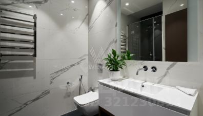 Угловые апартаменты площадью 92 м² в комплексе Neva Towers. Апартаменты с готовой современной отделкой расположены в "Башне 2" на 7-м этаже. Интерьер оформлен в лаконичных светлых тонах, на полу выложена доска из натурального дерева. Санузлы отделаны крупным керамогранитом.