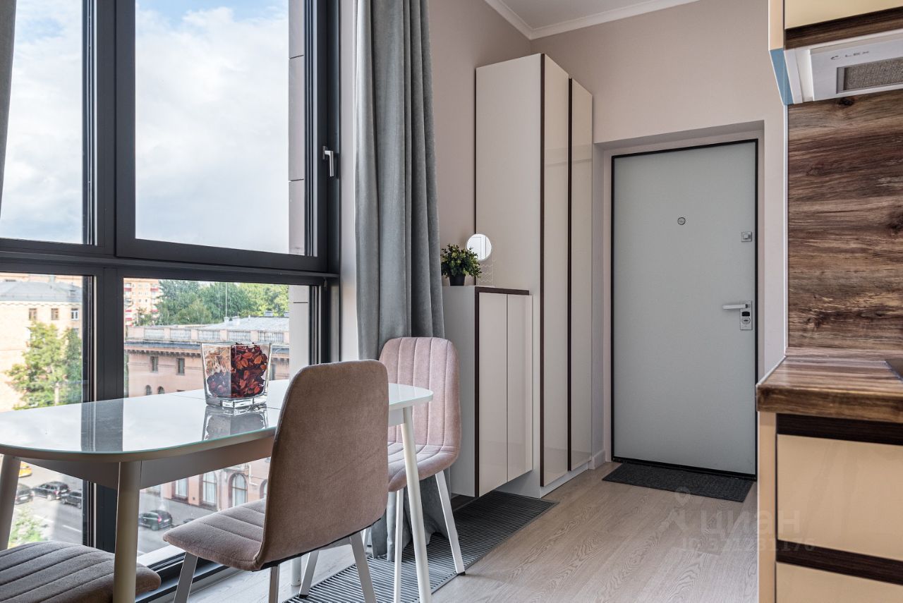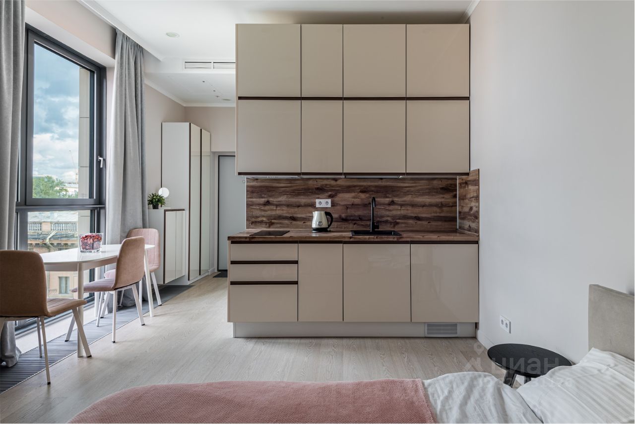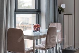 Светлая и функциональная квартира-студия в современном жилом комплексе на Ленинградском проспекте. Пространство продумано до мелочей: оборудованная кухня с плитой и всей необходимой утварью, удобная кровать, дополнительное спальное место, а также современный санузел с душевой кабиной и стиральной машиной.