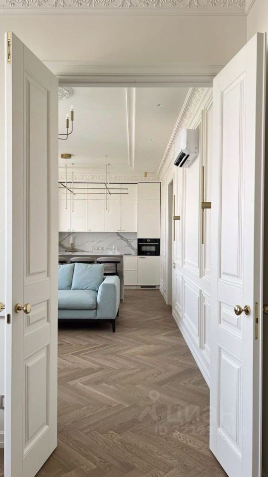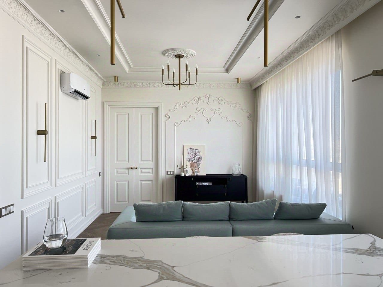 Вся мебель новая, квартира выполнена в стиле современная классика.