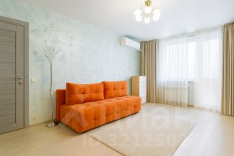 — Просторная 2-комнатная квартира посуточно в Москве — яркий рыжий диван, большой телевизор и современный кондиционер для максимального комфорта!