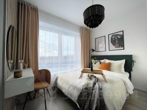 - Вторая спальня под детскую/кабинет/гостевую. В ней есть шкаф, письменный стол, стеллаж.