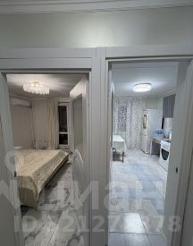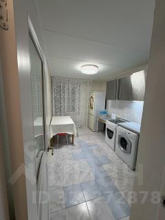 Кухня оборудована всем необходимым: холодильник, стиральная машина, плита. Совмещённый санузел оформлен в светлых тонах.