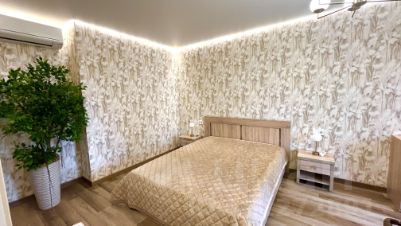 Ортопедический матрас на двуспальной кровати, удобный угловой шкаф, диван с функцией раздвижного кресла для релакса, удобные эргономичные мягкие стулья. Большой функциональный кухонный гарнитур. Вся Новая бытовая техника : холодильник, варочная панель, духовка, вытяжка - вплоть до посудомоечной машины. Большой телевизор . Для Вашего комфорта продумано все до самых необходимых мелочей: посуда, чайник, пылесос.