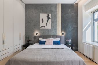 В нашей квартире 3х метровые потолки, окна с большими подоконниками из мрамора и розетками. Двухкомнатная квартира с просторной спальней и кухней-гостиной.
