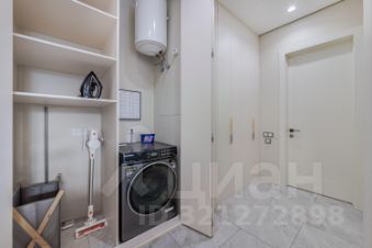 Комфортные условия для организации личного пространства благодаря наличию мест для хранения вещей и большому числу вешалок. В одном из шкафов спряталась зона со стиральной машинкой, гладильной доской, утюгом.