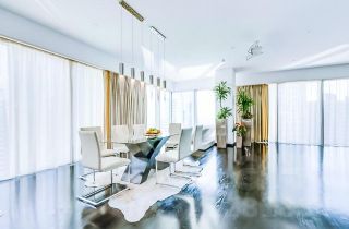 Панорамное остекление открывает захватывающие виды на столицу, наполняя пространство естественным светом и энергией.