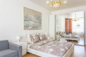 Особая аура самой квартиры сделает прибывание гостей максимально приятным. Широкие оконные проемы позволяют проникать большому количеству естественного света и делают квартиру очень светлой и уютной, а высокие потолки обеспечат дополнительный комфорт. В квартире имеется все необходимое для длительного проживания.