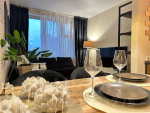 Сдаётся уютная квартира евродвушка с дизайнерским ремонтом. Квартира расположена на 5 этаже современного 25-этажного монолитного дома, построенного в 2015 году. Общая площадь квартиры составляет 40 кв, отдельная спальня, прихожая, кухня-гостиная, ванная комната. Окна выходят на улицу. В доме закрытая территория, шикарный внутренний двор.