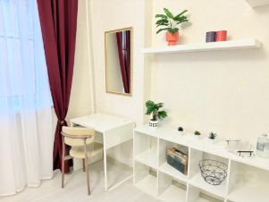 Сдаётся стильная комната после свежего дизайнерского ремонта — светлая, уютная и полностью готовая к проживанию. Внутри всё новое и аккуратное: удобная кровать с ящиками для хранения (раскладывается в двуспальную), современный шкаф с зеркалом, мягкий диван, большое зеркало, рабочее место, телевизор и кондиционер. Дизайн выполнен в спокойных тонах с яркими акцентами, поэтому в комнате приятно отдыхать и работать. Интернет с Wi-Fi роутером проведен.