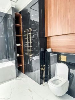 Дизайнерский ремонт выполнен с использованием премиальных материалов и передовых технологий, качественная дорогая мебель из массивов лучших пород дерева. Есть вся необходимая бытовая техника от лучших производителей. Современная ванная комната оборудована сантехникой от мировых брендов.