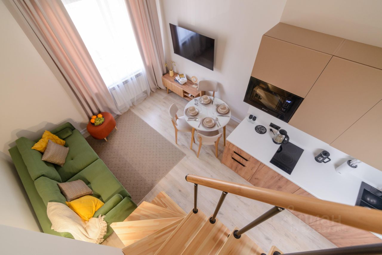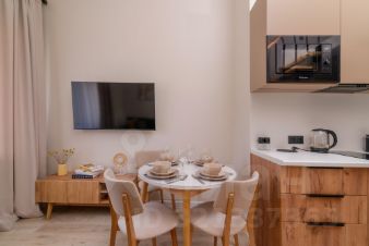 Студия расположена на втором этаже дома бизнес-класса, в 13-14 минутах пешком от метро.