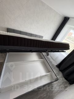 В спальне кровать с подъемным механизмом и ящиками. Матрас 180 на 200, тв (43 диагональ)