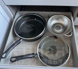 На кухне: тв ( 32 диагональ) посудомоечная машина, фильтр для воды ( нет надобности заказывать бутилированную воду) набор посуды из фарфора на 4 персоны, набор столовых предметов (24 шт), набор сковород 24 и 26 с крышкой, кухонный набор, стаканы для воды/коктейлей (12 шт), 2 кастрюли, чайник, плита и духовой шкаф. Стол разборный с возможностью увеличения количества персон до 6 мест. Вытяжка, каменная столешница ( 4 см)