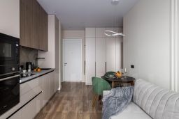 Комфортабельные апартаменты в живописном районе. Совершенно новый дизайнерский ремонт приведет вас в восторг и расширит границы представления о комфорте. Для вас предусмотрено все до мелочей: от мягких домашних тапочек и вафельных халатов, до средств личной гигиены; от базовой посуды, до кофемашины; от обувной ложечки, до приветливого консьержа и ресепшена на клубном этаже. Но самая главная особенность квартиры — это персональный балкон, с которого открывается изумительный панорамный вид на реку и красивые новостройки, а также мосты и размеренно проплывающие теплоходы с причудливыми электросудами речного метро. Разглядеть можно многие районы города, а вечером атмосфера становится и вовсе по волшебному особенной.