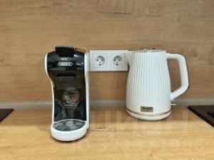 Плита, холодильник, микроволновая печь, чайник, набор посуды, кофемашина;