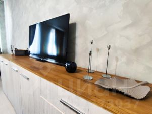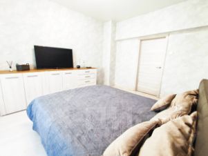 Квартира и комната меблирована, для удобства имеется двуспальная кровать с подъемным механизмом, 2 шкафа для личного хранения вещей, комоды, тумбы, телевизор, установлено кондиционирование.
