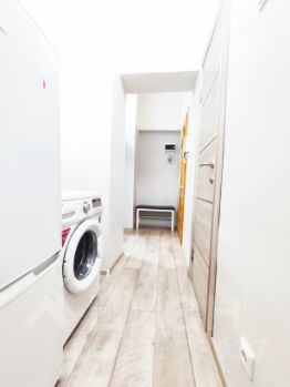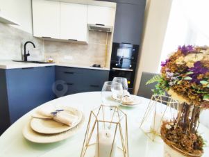 Кухня оснащена всей необходимой техникой (встроенный духовой шкаф, варочная газовая панель, вытяжка, микроволновая печь, посудомоечная машинка, холодильник, стиральная машинка). Ванна и санузел раздельные. Просторный коридор со встроенными шкафами для хранения верхней и повседневной одежды.