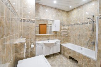 Планировка квартиры: изолированная кухня, просторная гостиная с балконом, 2 спальни, ванная комната, гостевой санузел с душевой кабиной, кладовая. Окна выходят на две противоположные стороны, окна кухни, гостиной с балконом и главной спальни выходят на тихий Наставнический переулок, окна второй спальни - на внутренний закрытый двор. В квартире очень тихо благодаря тройному стеклопакету.