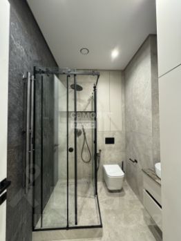 Квартира сдается впервые, после дизайнерского ремонта, санузел совместный, абсолютно новый диван, хороший кухонный гарнитур со встроенной техникой, есть посудомоечная машина, стол, стулья, комната изолирована и удачно зонирована.