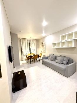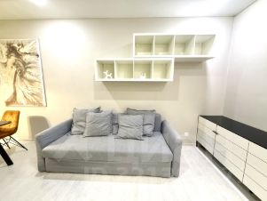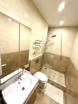 Квартира выполнена с дизайнерским ремонтом и полностью готова к проживанию. В просторной кухне есть вся необходимая мебель и техника: холодильник, посудомоечная машина и стиральная машина. В гостиной установлен кондиционер и телевизор, что обеспечит комфортный отдых. Санузел совмещенный, оборудован современной душевой кабиной.