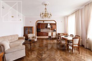 Функциональная планировка: кухня-гостиная, четыре жилых комнаты (одна с выходом на балкон), гардеробная, два полноценных с/у с ванной и душевой кабиной, гостевой с/у. Квартира частично меблирована, укомплектована необходимой для жизни бытовой техникой. Кондиционирование, бойлер, кабельное ТВ, высокоскоростной интернет.