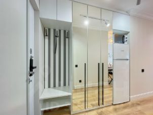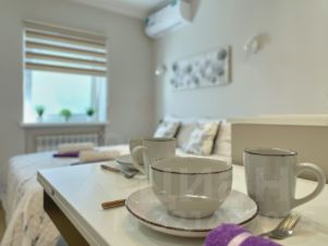 В квартире для удобного проживания имеется современная мебель и техника: двуспальная кровать и маленький диван, бытовая техника, скоростной WI-FI, Спутниковое ТВ , стиральная машина, кондицонер ,гладильная доска, сушка, оборудованная кухня, полный комплект посуды для приготовления и приёма еды, шампунь/ Антибактериальный гель/мыло, тапочки.
