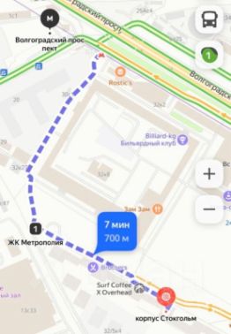 В 5-ти минутах ходьбы находится станция МЦК "Угрешская" и в 7-ми минутах станция метро "Волгоградский проспект" (проход через территорию ЖК).