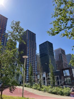 Квартира находится во второй очереди, удаленной от ТТК, территория представляет собой закрытый, охраняемый двор с большим количеством зон отдыха, детских и спортивных площадок, также имеется площадка для выгула собак. На территории расположены кафе, пекарни, продуктовые магазины, аптеки, маркетплейсы.