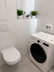 Телевизор в каждой комнате со смарт ТВ, Wi-Fi, стиральная машина, сушилка, гладильная доска, утюг, фен, пылесос, тапочки, ванные принадлежности, средства гигиены, белоснежное постельное белье и полотенца, соль, сахар, чай, кофе, масло и др.
