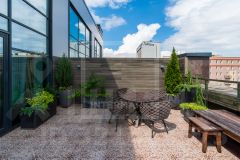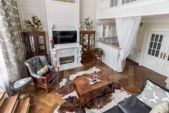 ID 46069. Двухуровневые апартаменты ПРЕМИУМ класса с прелестно благоустроенной террасой в ЖК Art Residence на 3-й ул. Ямского Поля, д. 9. Идеально реализованный застройщиками арт-проект клубного типа с апартаментами класса ЛЮКС для статусных резидентов. Абсолютно новый ремонт, авторский дизайн, классический интерьер в сочетании с современной функциональностью. Все: от антикварной мебели, спального гарнитура из массива дерева, светильников, мебели для санузлов (напр., малахитовая раковина) до элементов декора создано или привезено на заказ и имеет высокий уровень качества.Особую привлекательность апартаментам придают настоящий дровяной камин, выполненный по всем правилам установки; собственная благоустроенная терраса (35 кв. м), высокие потолки (6 м) и изумительная лестница с резными балясинами, свежий воздух и комфортный температурный режим — атмосфера наивысшего комфорта загородной жизни. Апартаменты полностью готовы к заселению: укомплектованы роскошной и изысканной мягкой мебелью, бытовой техникой, функционально оборудованы гардеробные комнаты с возможностью регулировки высоты полок.Площадь самих апартаментов 135 кв. м, на 1-м уровне: гардеробная со встроенной системой сушки вещей, хозблок с гостевым туалетом, объединенное пространство кухни, обеденной зоны и гостиной с выходом на открытую террасу. На 2-м уровне расположена спальня, гардеробная и душевая комната. Панорамное остекление и высокие потолки подчеркивают воздушность пространства и добавляют естественного света. Презентабельная входная группа с центральной рецепцией с услугой консьерж-сервиса, холлом с зоной ожидания и офисом УК. На территории комплекса интересно организован двор с зелеными насаждениями, скамейками и качелями он находится на крыше 2-ярусной парковки. Аренда м/м за дополнительную плату. В комплексе имеется разнообразная инфраструктура: от кафе и ресторанов, "ВкусВилл"-супермаркета и барбершопа до студии танцев, галереи современного искусства и продюсерской студии для молодых музыкантов.