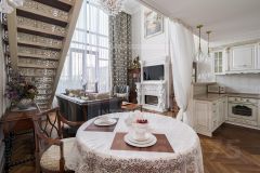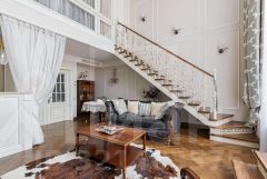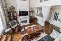 ID 46069. Двухэтажные апартаменты с камином и террасой в ЖК Art Residence, 3-я ул. Ямского Поля, д. 9. Арт-проект клубного типа класса ЛЮКС. Городской стиль с атмосферой загородной жизни. Авторский дизайн. Спальный гарнитур из массива дерева, дорогая мягкая мебель, уникальные светильники, мебель из оникса для санузлов, элементы декора все привезено на заказ из-за рубежа и имеет высокий уровень качества и состояния. Центр притяжения это действующий дровяной камин и собственная благоустроенная терраса. Фактическая площадь 130 кв. м. На 1-м уровне: гардеробная со встроенной системой сушки вещей, гостевой санузел со стиральной машиной, объединенное пространство кухни и гостиной с выходом на открытую террасу. На 2-м уровне расположена спальня, гардеробная с регулировкой высоты полок, душевая комната. Панорамное остекление, высокие потолки (6м), лестница с резными балясинами подчеркивают воздушность пространства и обеспечивают его естественным светом. В квартире поддерживается комфортный температурный режим Презентабельная входная группа дома с центральной рецепцией, услугой консьерж-сервиса, холлом с зоной ожидания и офисом УК. На крыше 2-ярусной парковки благоустроен и озеленен дворик со скамейками и качелями. Аренда м/м за дополнительную плату. В комплексе имеется разнообразная инфраструктура: от кафе и ресторанов, "ВкусВилл"-супермаркета и барбершопа до студии танцев, галереи современного искусства и продюсерской студии для молодых музыкантов. По данному объекту предусмотрено гарантированное вознаграждение профессиональным агентствам и частным брокерам.