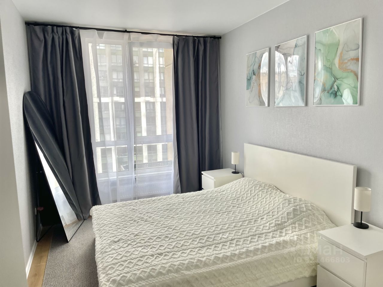 • Спальня 1: Кровать 160х200 см с системами хранения под ней, две прикроватные тумбы, просторный шкаф 140 см, напольное зеркало.