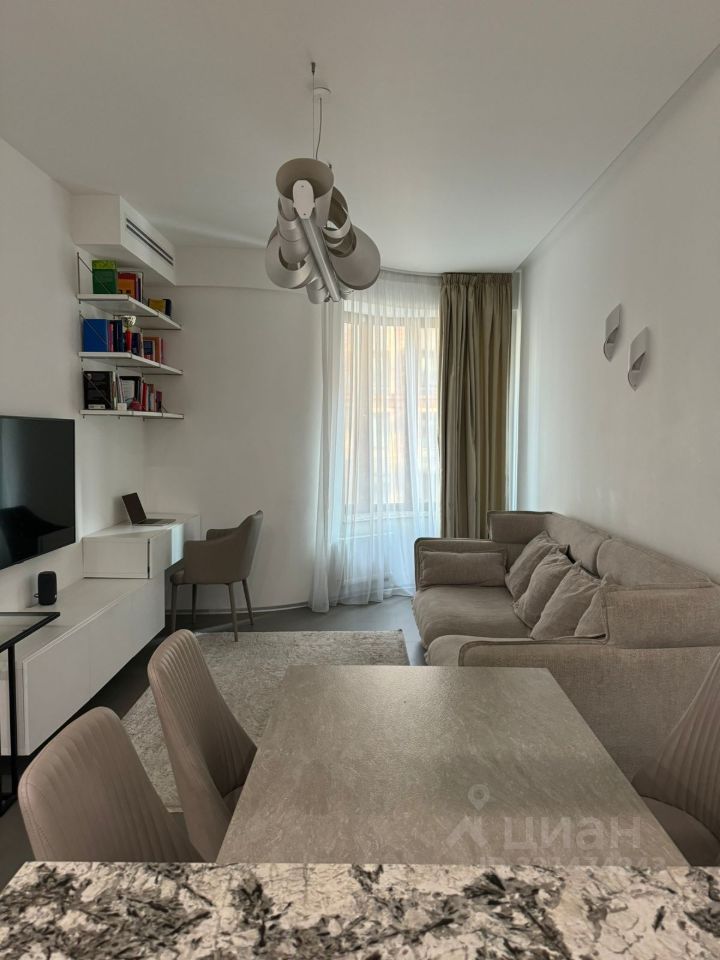 Квартира оборудована всей необходимой для проживания мебелью и техникой. В кухне-гостиной расположен кухонный гарнитур с качественной техникой: большой холодильник с морозильной камерой, духовой шкаф с функцией пароварки, микроволновая печь, индукционная панель, кран для воды с разными фильтрами, а также большой диван, телевизор с диагональю 55 дюймов, зона для работы.