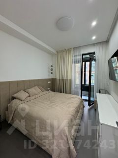 Спальня оборудована кроватью 180х200 с подъемным механизмом, телевизором, комодом и туалетным столиком, а также имеются отдельные выходы в гардеробную и на балкон.