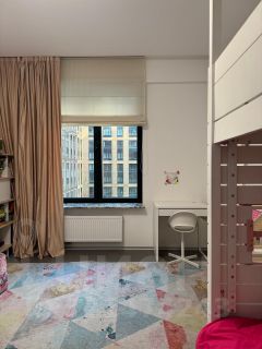 В детском комнате расположена двухъярусная кровать с возможностью расширения до трех спальных мест, большой шкаф, стеллажи и отдельные рабочие места для детей, а также имеется выход в собственную ванную комнату.
