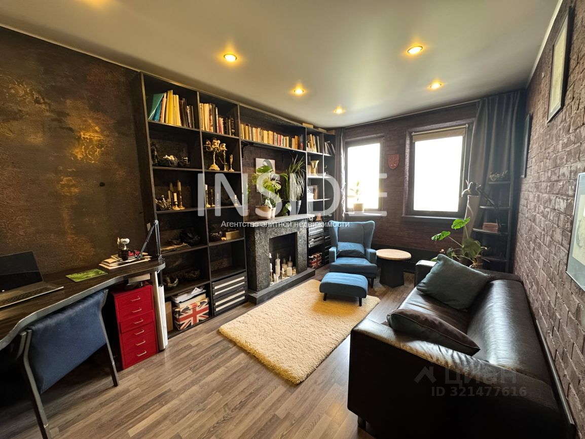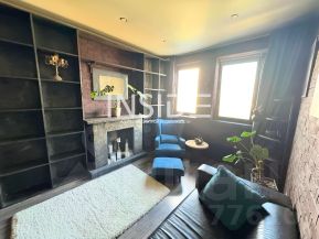 •кабинет - большой угловой рабочий стол и стеллажи, декоративный камин, раскладывающийся диван ( удобное спальное место ), кресло, журнальный стол; вид на город