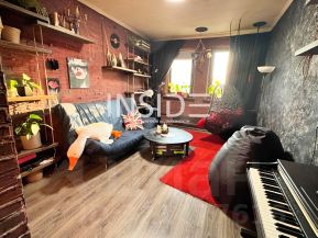 • кухня кухонный гарнитур, большой стол, диван, телевизор, кофемашина, чайник, тостер, посудомоечная машина, кондиционер, посуда; окна во двор