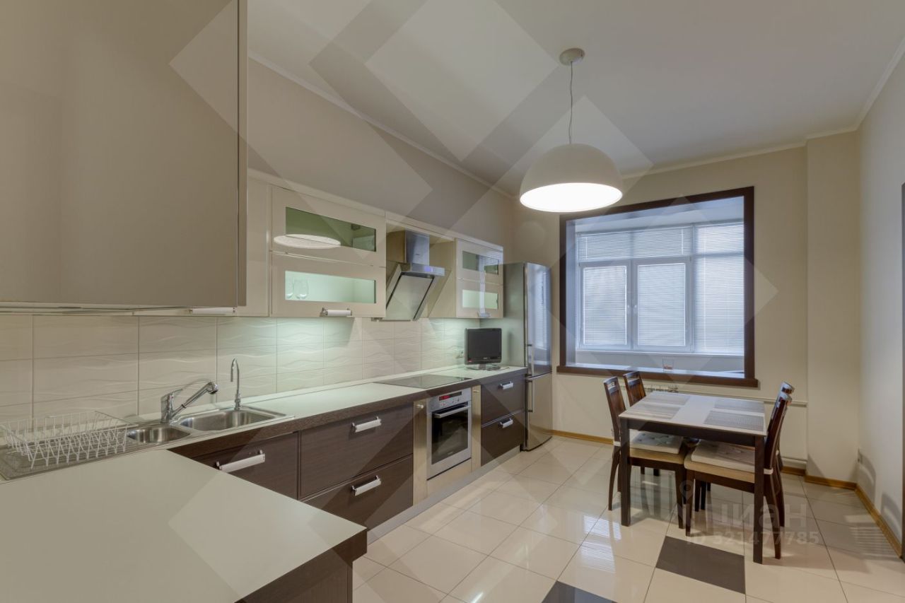 В квартире выполнен свежий ремонт в западном стиле, высокие потолки, ультрасовременная мебель, панорамный вид на парк.