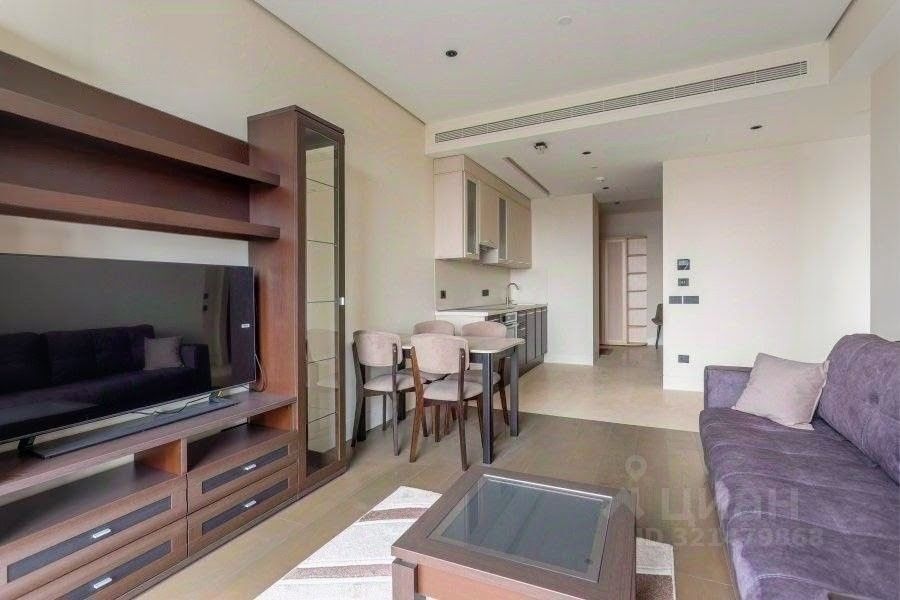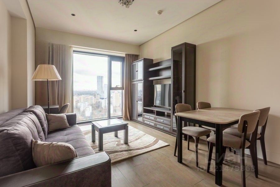 Сдаётся просторный и светлый апартамент в Москве на Поклонной улице, 9. Апартаменты располагаются на 21 этаже 34-этажного дома, что открывает потрясающий вид на город. Общая площадь квартиры составляет 65 кв. м, из них 30 кв. м — жилая площадь и 25 кв. м — просторная кухня. Высокие потолки в 3 метра добавляют ощущение простора и свободы.