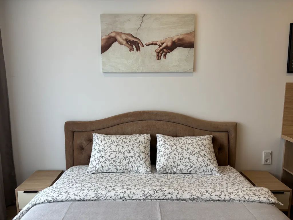 В квартире есть всё для комфортного проживания: телевизор, Wi-Fi, полностью оборудованная кухня, кондиционер, фен, средства для гигиены. Удобная кровать 180200 см (king-size) с ортопедическим матрасом.