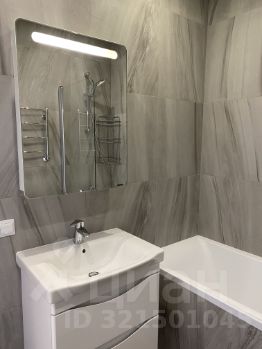 Совмещённый санузел с комфортной ванной, раковиной и зеркалом с подсветкой
