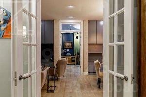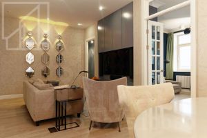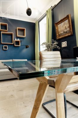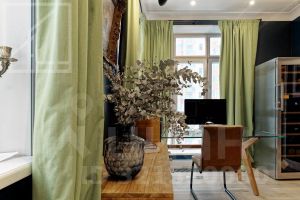 Планировка: гостиная-кухня с обеденной зоной, три спальни, гардеробная, кладовая, два санузла. Потолки 3м. Окна выходят на 3 стороны. Квартира полностью меблирована и оснащена всей необходимой для комфортного проживания техникой.