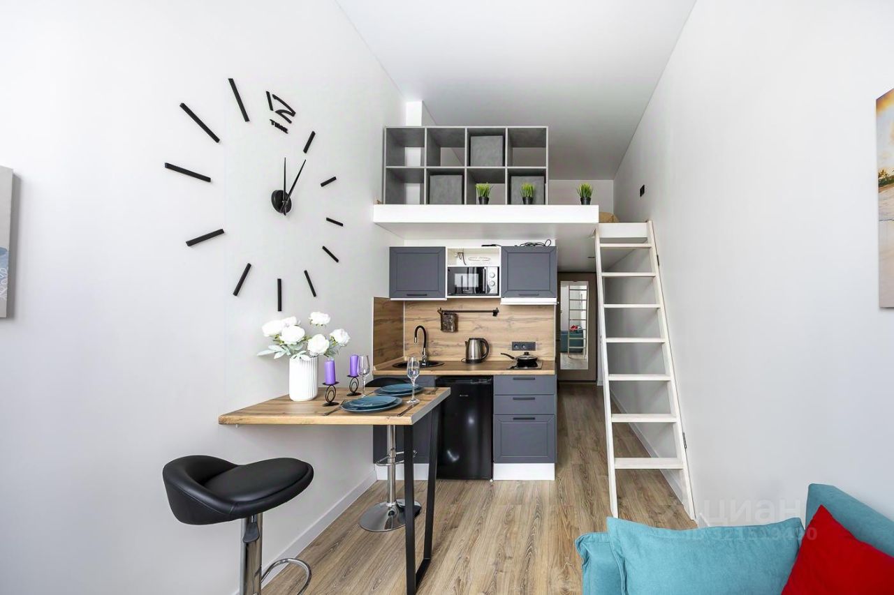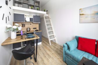 Описание квартиры: Это двухуровневые апартаменты общей площадью 25 м² (20 м² + 5 м² второй уровень). Квартира оснащена современной мебелью и техникой для максимального удобства ваших поездок. Здесь есть всё необходимое для полноценного отдыха и продуктивной деятельности.