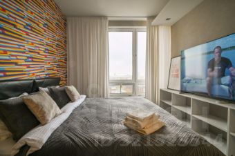 В квартире имеется отдельная спальня с широкой кроватью (180 см) и ортопедическим матрасом, огромный ЖК телевизор со смарт ТВ. В гостиной односпальный диван, удобное кресло-шезлонг, огромный ЖК телевизор со смарт тв и игровой приставкой, кондиционер. Обеденная зона. Кухонный гарнитур со всей бытовой техникой, включая кофеварку и посудомоечную машину. Так же имеется всё необходимое для отдыха и работы: безлимитный интернет, Wi-Fi, холодильник, стиральная машина, электрический чайник, СВЧ, фен, утюг, гладильная доска, посуда.