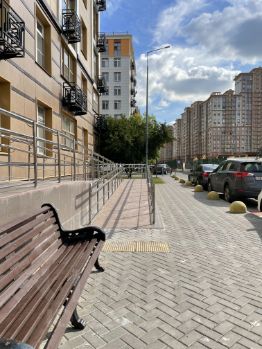 В санузле установлена душевая кабина,пол с подогревом. Квартира оснащена всей необходимой техникой для проживания: холодильник, телевизор и стиральная машина. В доме есть пассажирский лифт и мусоропровод, а также пандус для удобства.